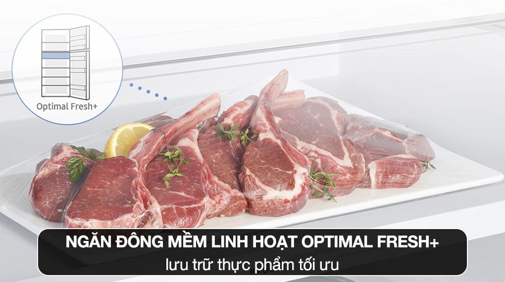 – Ngăn đông mềm linh hoạt Optimal Fresh+: Được thiết kế kín, giảm thiểu tình trạng lẫn mùi thực phẩm, đồng thời cho phép bạn tùy chỉnh 4 chế độ linh hoạt theo nhu cầu lưu trữ và nhóm thực phẩm bảo quản như:
