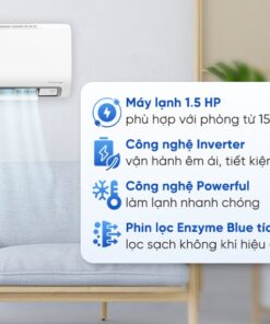– Công nghệ Inverter – điều chỉnh vòng quay máy nén linh hoạt theo mức tải nhiệt, giúp máy vận hành ổn định, tiết kiệm điện đáng kể so với máy không Inverter.
