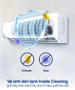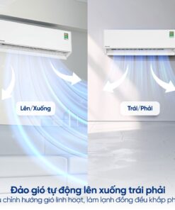– Máy lạnh được trang bị cơ chế gió điều khiển lên xuống trái phải tự động, giúp phân bổ luồng khí đồng đều, mang lại cảm giác mát lạnh dễ chịu. Cánh đảo gió 4 chiều được thiết kế để hạn chế luồng khí thổi trực tiếp vào người, giúp giảm nguy cơ mắc các bệnh về hô hấp như ho, sổ mũi, phù hợp với gia đình có trẻ nhỏ và người cao tuổi.