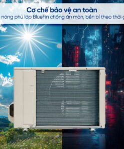 – Dàn nóng còn được phủ lớp BlueFin chống ăn mòn, giúp tăng tuổi thọ sản phẩm, phù hợp với môi trường có độ ẩm cao như các khu vực gần biển.