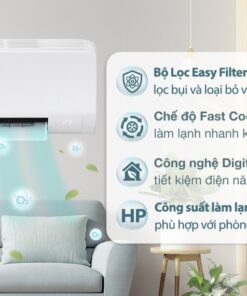 – Máy lạnh hoạt động ở công suất làm lạnh 1 HP – 9.000 BTU phù hợp với diện tích phòng dưới 15m² (từ 30 đến 45m³).