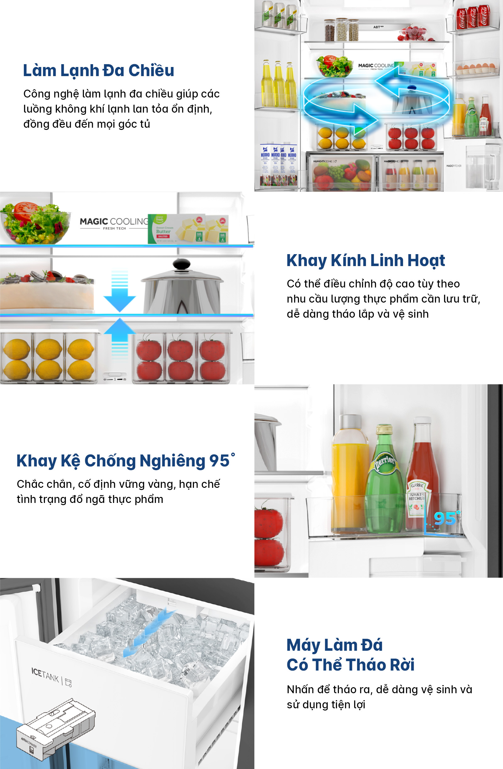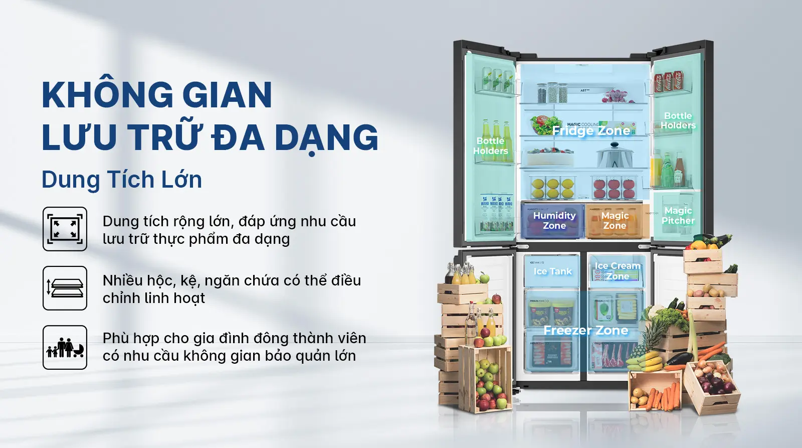Tủ lạnh Aqua Inverter 522 lít AQR-MA600XA(KGC)U1 sở hữu thiết kế hiện đại với gam màu trắng cao cấp, mang đến vẻ đẹp sang trọng cho gian bếp. Với dung tích lên đến 522 lít, sản phẩm đáp ứng tốt nhu cầu lưu trữ thực phẩm cho gia đình đông người từ 4–6 thành viên.