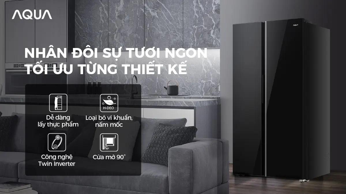 Tủ lạnh Aqua Inverter 646 lít AQR-S682XA(GB) có công nghệ Twin Inverter giúp ổn định nhiệt độ, tiết kiệm điện năng và vận hành êm ái. Bộ lọc than hoạt tính DEO Fresh giúp khử mùi, kháng khuẩn, đảm bảo độ tươi ngon và chất lượng tốt nhất cho thực phẩm và có sức chứa khổng lồ trong tầm tay: Tổ chức thực phẩm khoa học, tìm kiếm dễ dàng chỉ trong tích tắc.