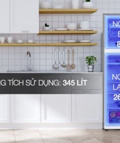 – Dung tích 345 lít phù hợp cho lượng thực phẩm của gia đình có 3 – 4 người hoặc gia đình ít thành viên hơn nhưng có thói quen trữ thực phẩm nhiều ngày.