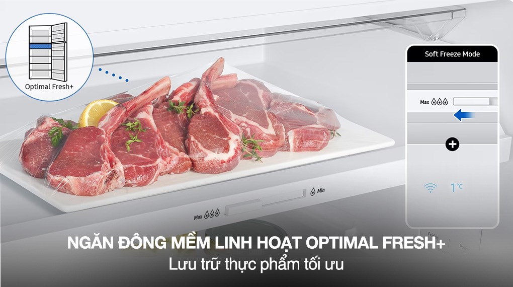 – Đặc biệt là có ngăn đông mềm linh hoạt Optimal Fresh+ hỗ trợ bảo quản thực phẩm tươi sống mà không cần rã đông với 4 chế độ lựa chọn.