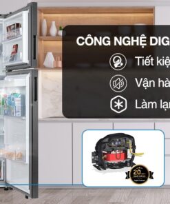 Hoạt động với công nghệ máy biến tần kỹ thuật số Digital Inverter sẽ tự động điều chỉnh tốc độ máy nén tùy vô nhiệt độ và lượng thực phẩm có bên trong tủ nhờ đó giúp giảm tiếng ồn, giảm hao mòn động cơ và kéo dài tuổi thọ máy. Đồng thời động cơ Digital Inverter còn được hãng bảo hành 20 năm.