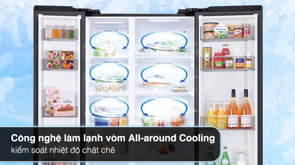 – Với công nghệ làm lạnh vòm All-around Cooling thực phẩm sẽ được bảo quản và làm lạnh toàn diện nhờ các hơi lạnh lan tỏa đều theo hình vòng cung, giúp kiểm soát chặt chẽ sự thay đổi nhiệt độ và luân chuyển hơi lạnh bao phủ toàn bộ thực phẩm thông qua hệ thống lỗ khí bố trí thông minh.