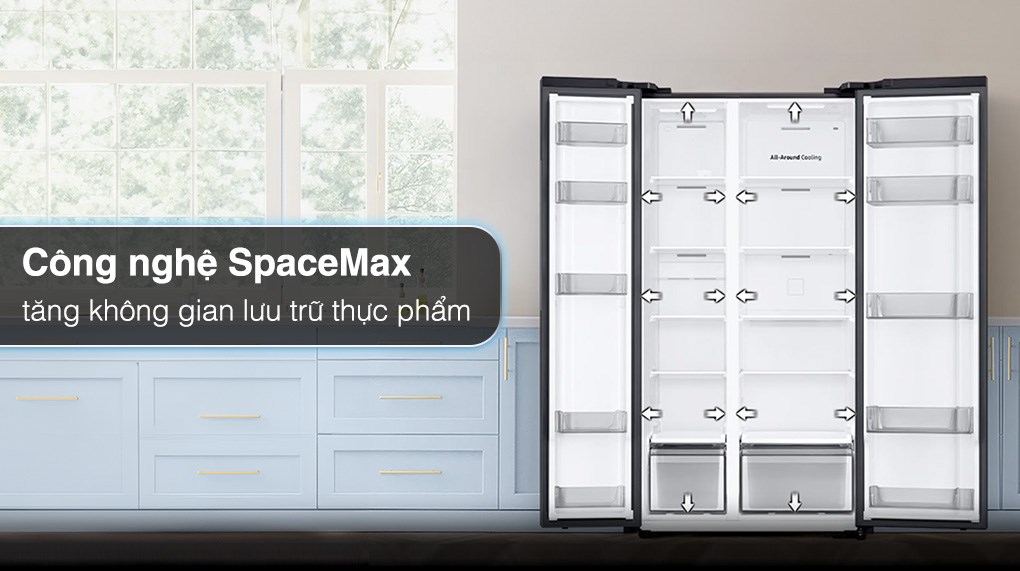 – Mở rộng không gian lưu trữ với công nghệ SpaceMax giúp giữ lạnh tối ưu đồng thời mở rộng thêm 100 lít cho không gian bên trong tủ.